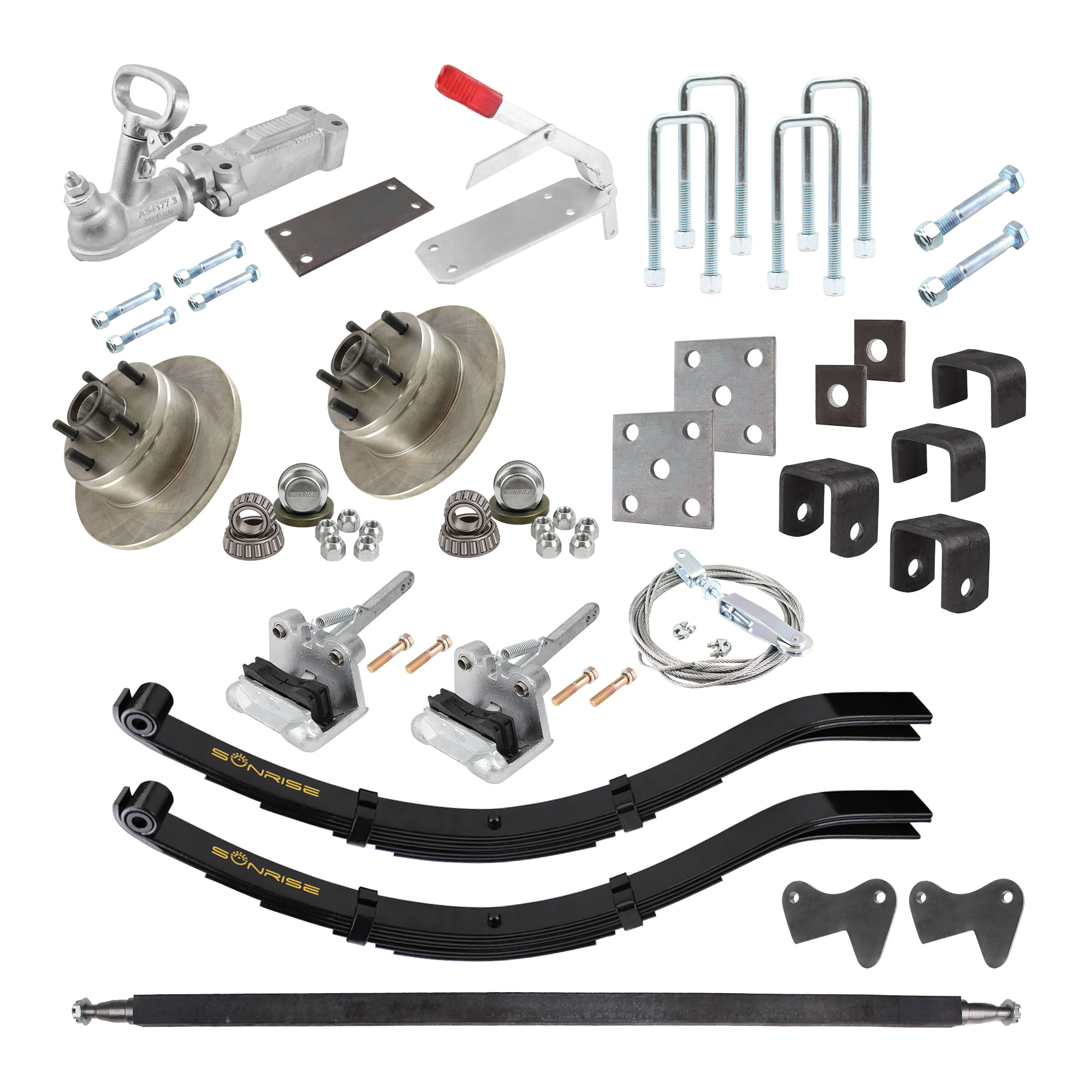 This single axle mechanical disc brake kit is designed for trailers with loads between 1000kgs and 2000kgs. Made from solid steel, these axles are built to last and easy to weld. Discs come with the stud pattern of your choice and also include bearings, oil seals, wheel nuts and dust caps. For the trailer suspension, choose from leaf springs or eye to eye springs, which come with all necessary fittings including brake lines. Lastly, the override coupling rated to 2000kg comes with a brake cable kit, as well as the required coupling plate and bolts to fit onto the frame of your trailer.
