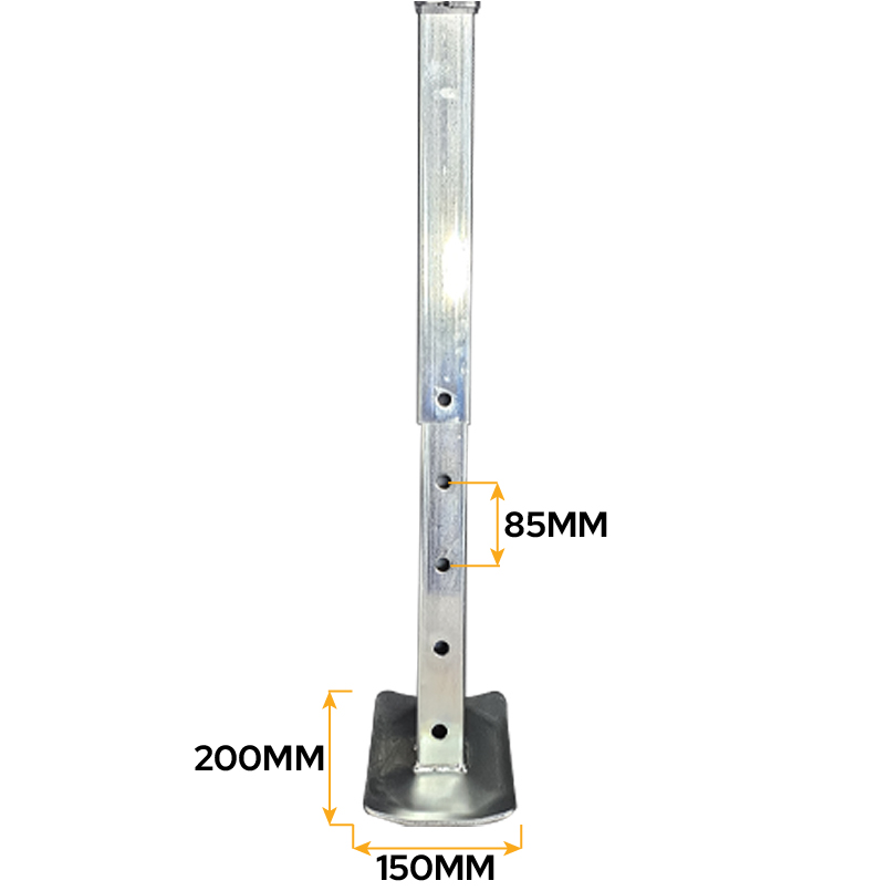 Jack stands are a strong and durable solution to help keep your trailer or caravan in the correct level position. The steel base plate gives them higher capacity then jockey wheels.
