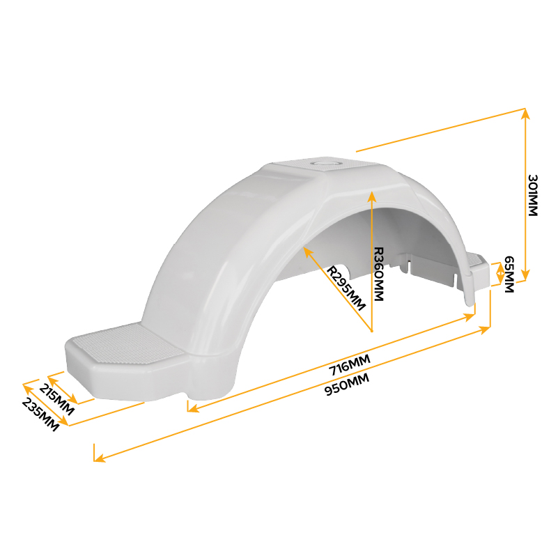 The single plastic mud guard is carefully moulded to perfection using the latest plastic engineering and plastic injection techniques. Locally made in Australia you can rest assured our mud guards use the highest standard of material to achieve quality results with robotic automation and metal replacement technology. Each guard is made from HD polyethylene toughened plastic and has superior UV protection to ensure they last on your boat trailer. Designed to fit over 13″ wheels this guard is commonly used on many different branded boat trailers such as Dunbier trailers.